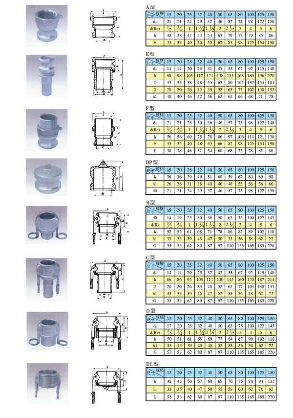 根據客戶需求,相同的A、E、F、DP中任何一種型號插軸可分別與B、C、D、DC中任何插套可組成一接頭體。
