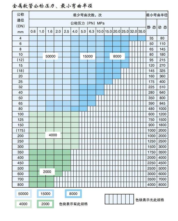 金屬軟管公稱壓力、最小彎曲半徑